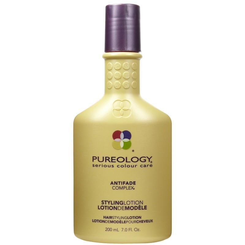 This Pureology Styling Lotion with its light weighted element provides medium hold for your hair. Fold and sculpt without limits. Blow dry without tangles or drag. Alcohol free formula with non stick resin provides weightless support. Anti Fade Complex maximizes color and thermal protection.